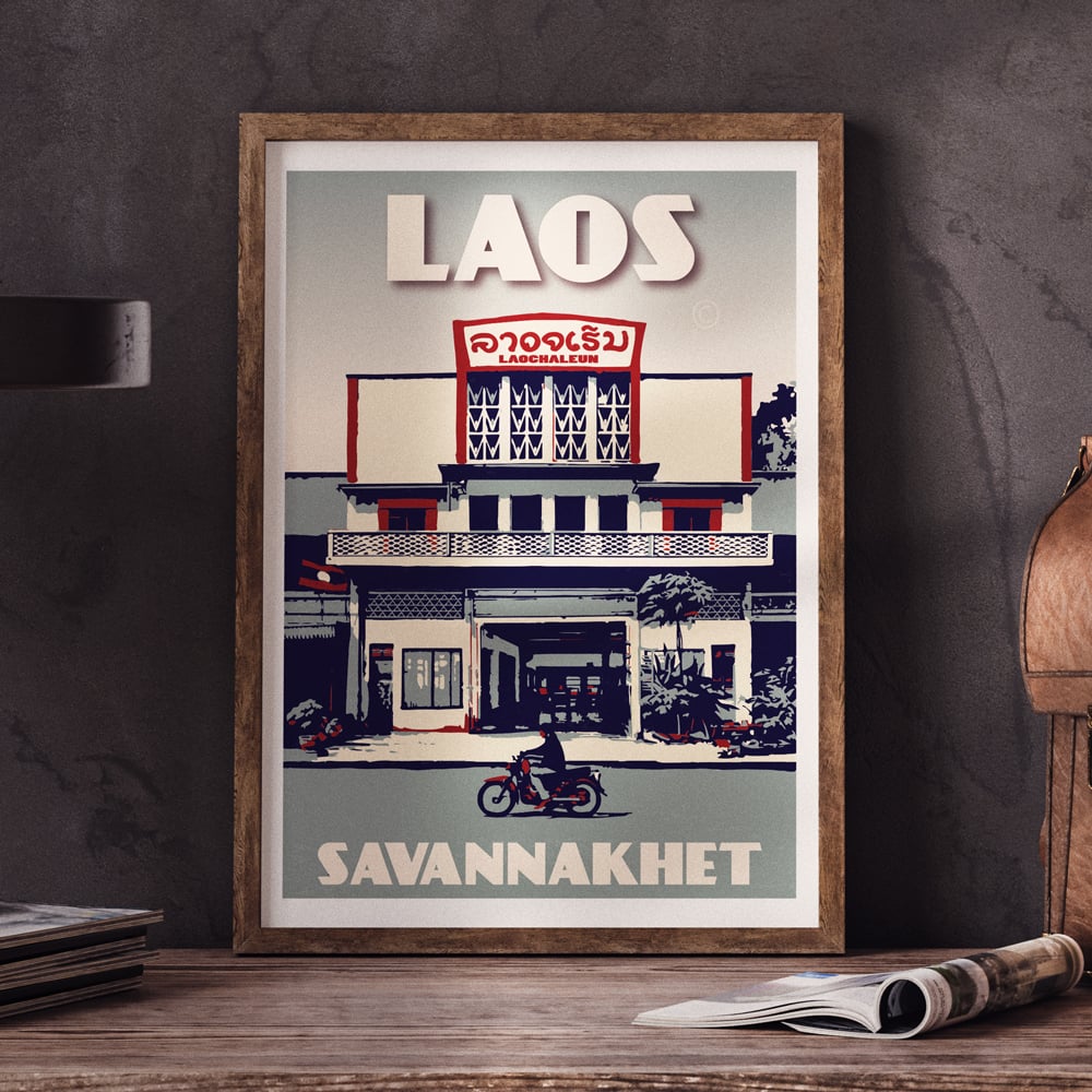 Vintage Laos Travel Poster – Savannakhet - Cinema Lao Chaleun | Retro Asian Wall Art