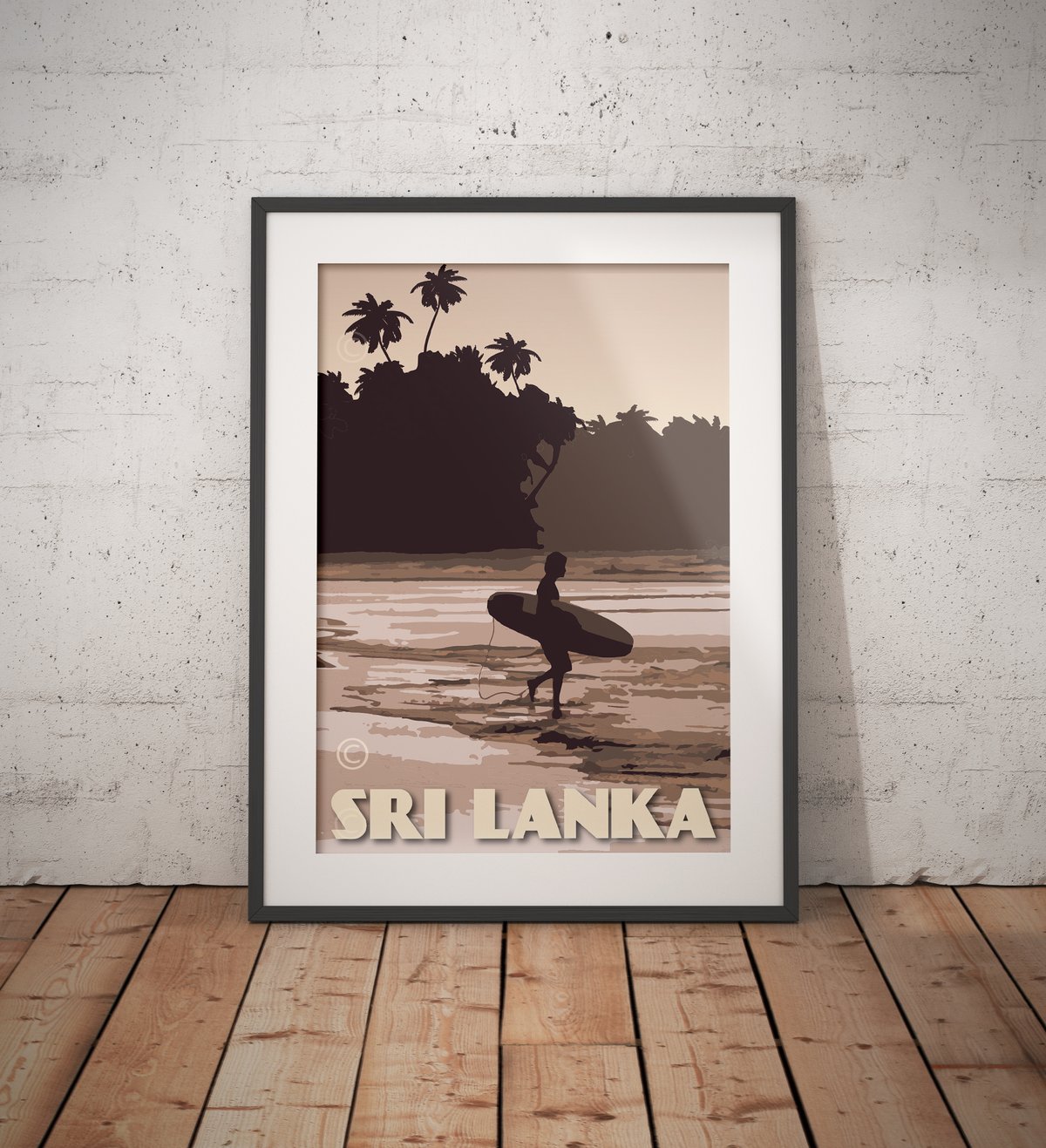 29/01/21 Vintage Poster Sri Lanka - Surfer on the Beach
